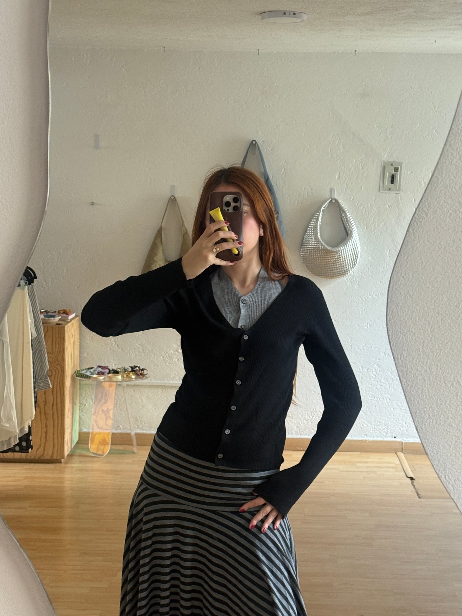 Cute y versátil !!! Aunque es una sola pieza puedes manipular los botones de ambas capas a tu gusto para darle mil looks diferentes !!! la tela es delgadita y fresca. Unitalla.