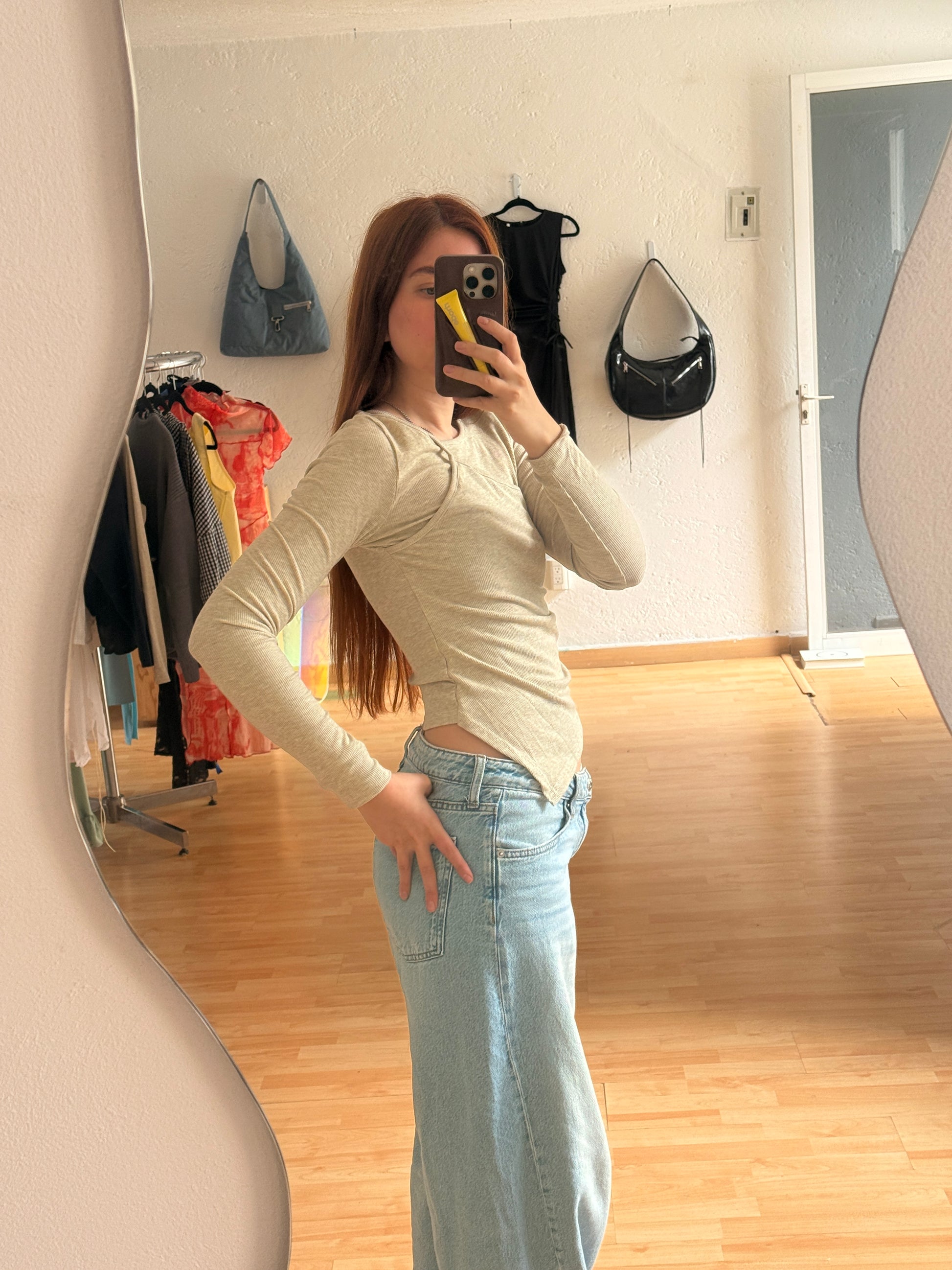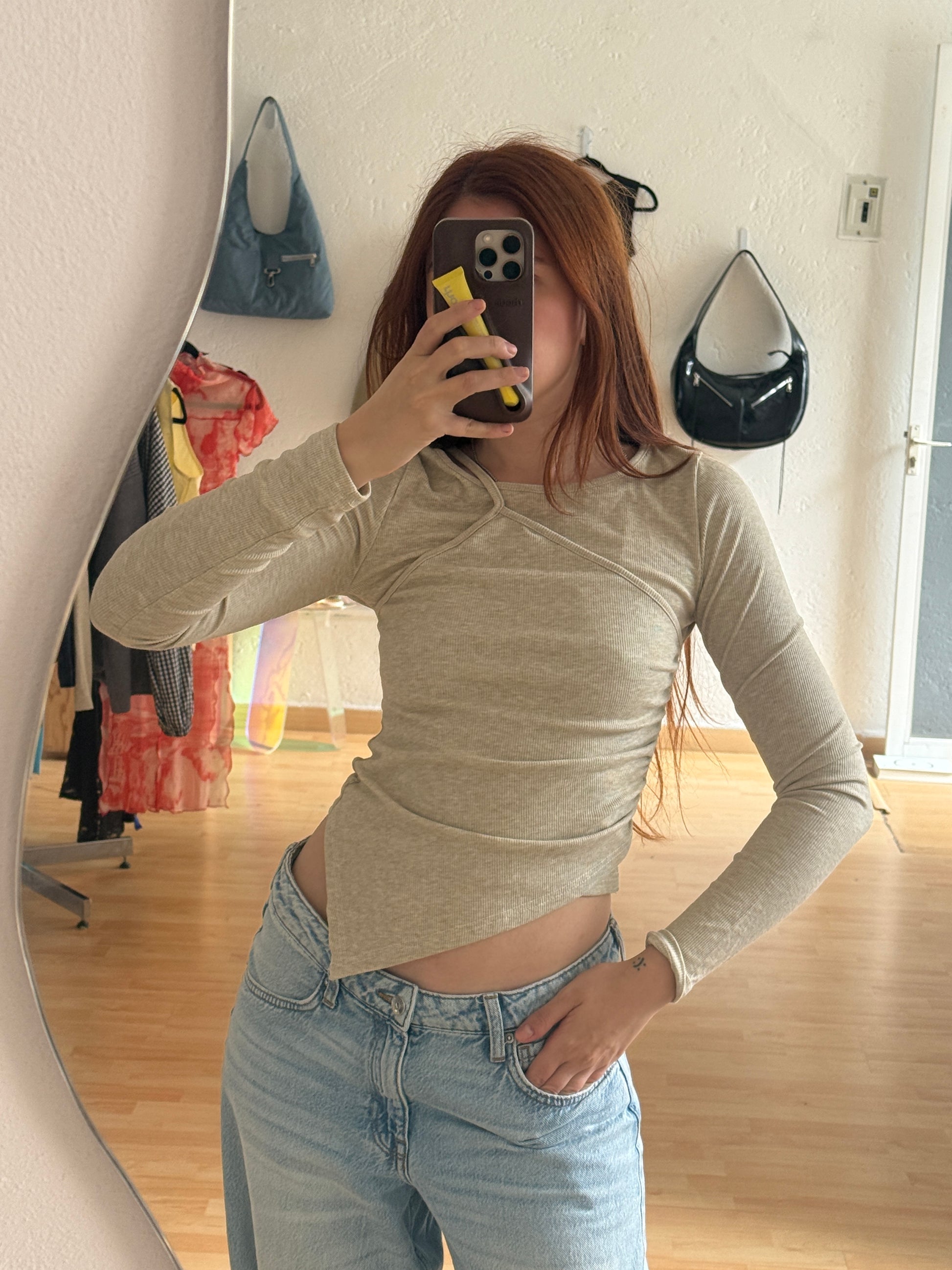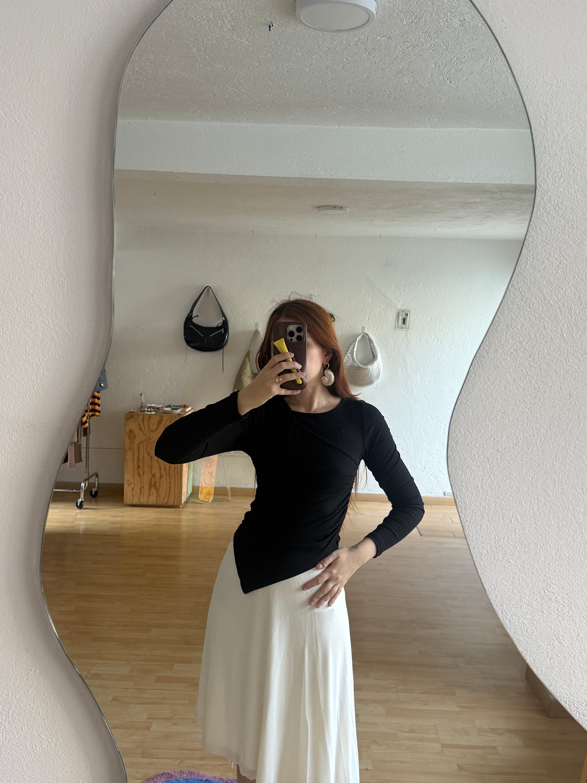 El top perfecto para cuando hace un poco de frio afuera y no te quieres poner chamarra !! ooo para ser la primera capa y te cubra súper bieen ya que es pegadita y suavecita y calientita !! Aparte me encanta que se ve padrisimo con lo que sea, jeans, pantalón, falda corta o larga.